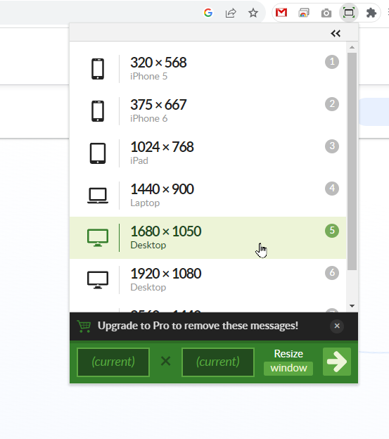 使い方は単純で、拡張機能を呼び出して、あらかじめ登録されているウインドウサイズを選択するのみ。
