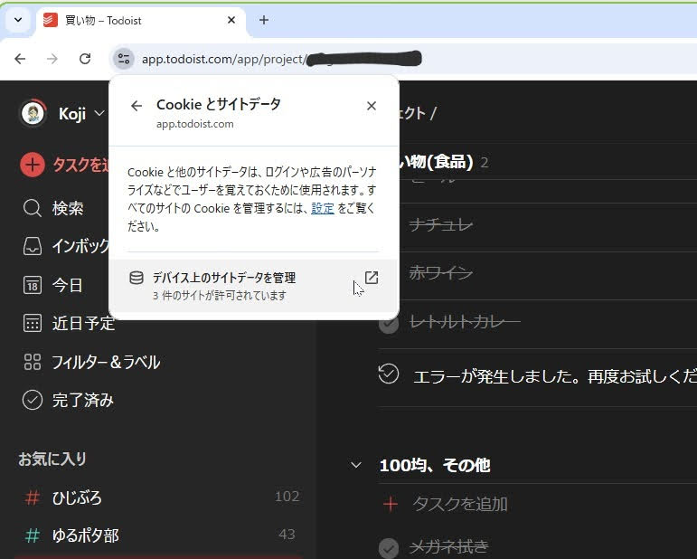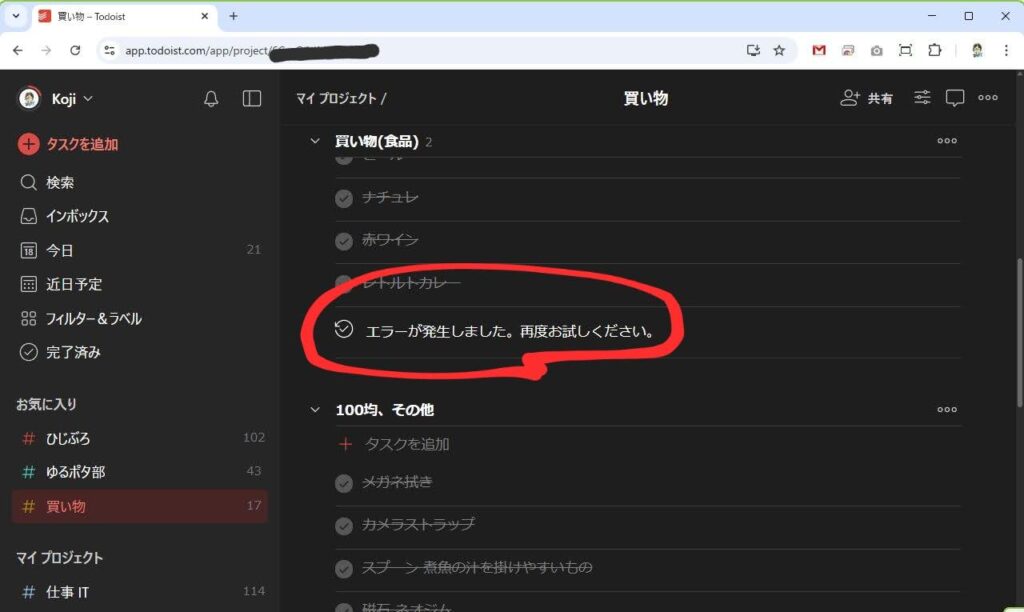 ブラウザを(突然?)終了すると、次回起動時にTodoistの情報の整合性が取れないのだろうか。