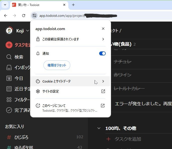 【Windows】Todoistの非表示項目の再表示でエラー(解決方法)