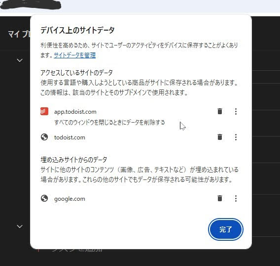 [アクセスしているサイトのデータ]の項目に以下の2つがあった。