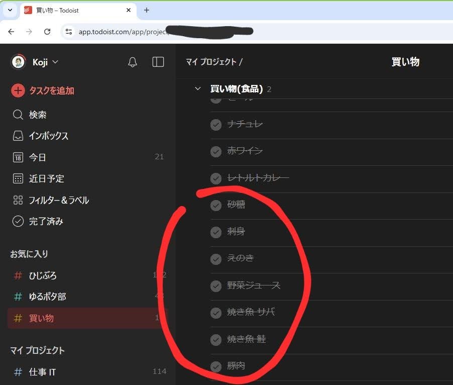 そう、ここでは買い物のメモにした時の、Todoistで困った現象があったので、それを解決したお話です。